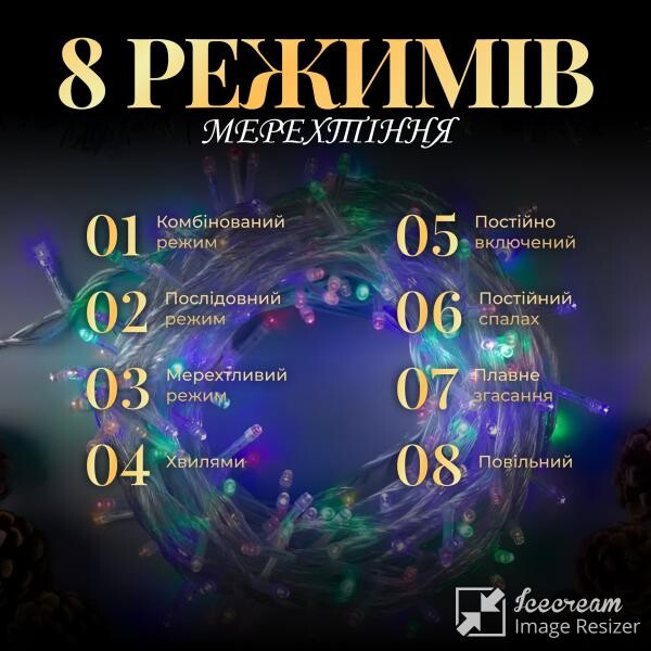 Устройство предлагает пользователю 8 режимов работы, для переключения которых имеется небольшой контроллер. В зависимости от ситуации и настроения можно выбрать предпочтительные световые эффекты, которые помогут создать по-настоящему праздничную атмосферу, наполнить дом теплом и уютом.
