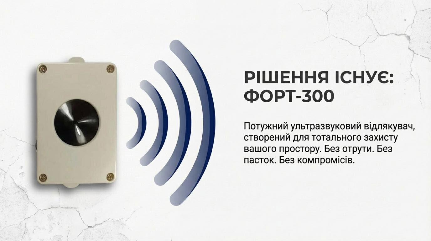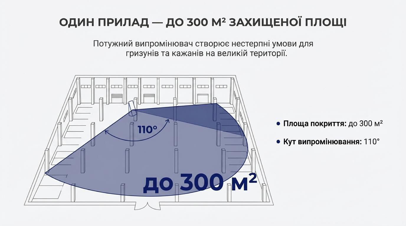 Отпугиватель заставляет вредителей покинуть территорию. Форт-300 эффективен на площади до 300 м².