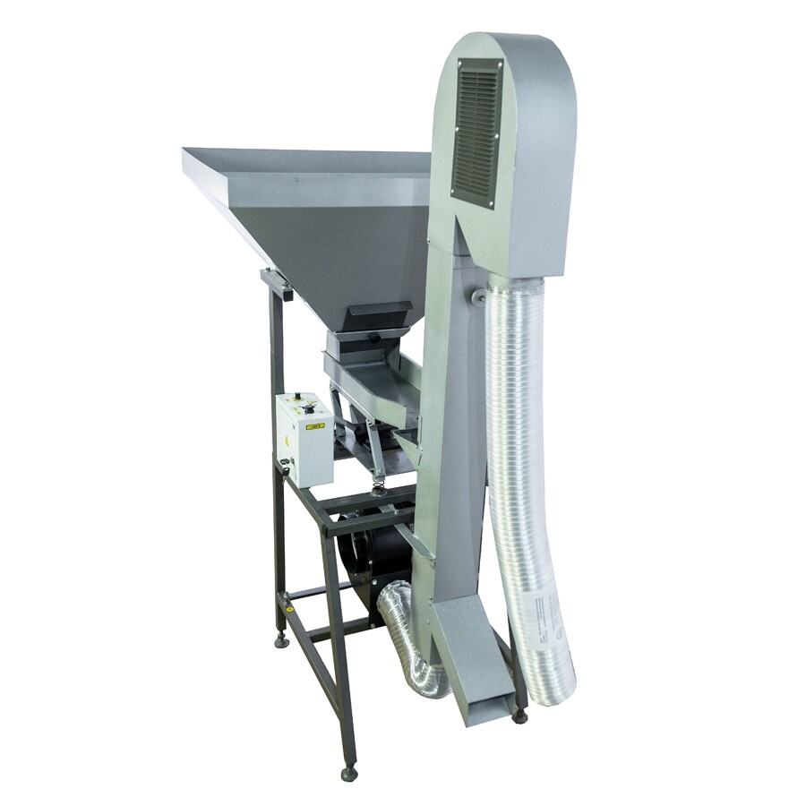 Аспіраційна колона - це установка для відділення шкаралупи, перегородок, пилу та сміття від ядра волоського горіха. Вона прискорює процес переробки волоського горіха та збільшує якість ядра на виході – ядро ??чисте, без сміття, пилу та шматочків шкаралупи. Віброподача звільняє від постійного ручного подавання горіха, завдяки чому працівник може обслуговувати інші установки під час роботи аспіраційної колони.