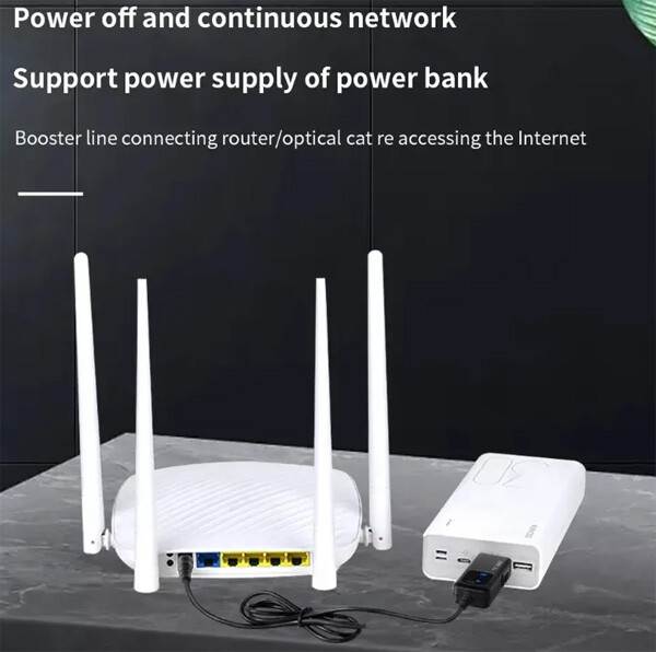 За відсутності електрики перехідник підключають до повербанка та заживляють від нього роутер. За допомогою приладу напруга АКБ на 5 В підвищується до 9 або 12 В.