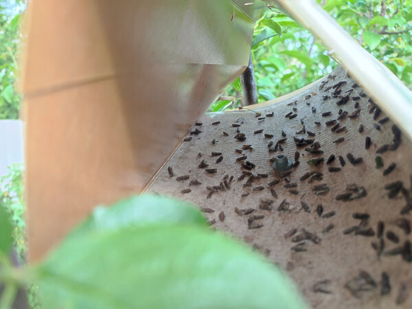 Якщо дерев від двох до п’яти, досить однієї пастки. Вішають їх на висоті 1,5–2 м на горизонтальні гілки в зовнішньому ярусі крони дерева. Потрібно подбати, щоби на сусідніх ділянках теж розвісили приманку для повнішого охоплення популяції комах. Змінюють їх кожні 4–6 тижнів.