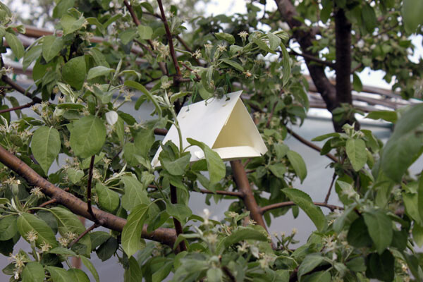 У спеціальну коробку кладуть приманку, яка містить феромон - приманку, що постійно випаровується, для яблуневої плодожерки. Потрапивши у пастку, метелик міцно прилипає до клейкого дна. Клей не має запаху і не містить токсичних для людини та корисних комах. Боротьба ведеться від початку цвітіння дерев, коли першими прилітають самці метеликів плодожерки і до того, як починають збирати врожай.