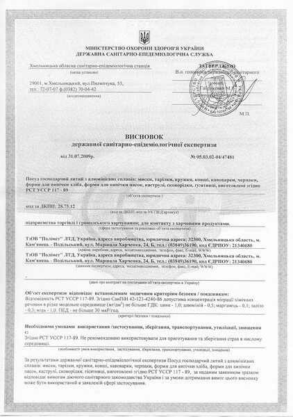 Виробник: ТМ Полімет ЛТД, м. Кам’янець-Подільський, Україна.