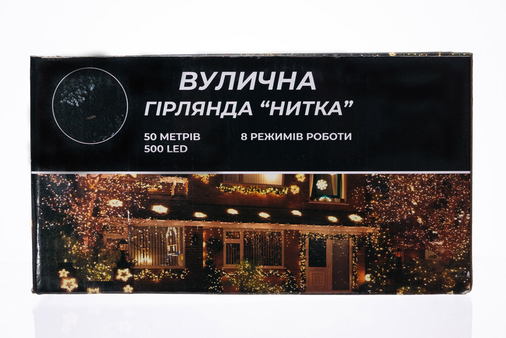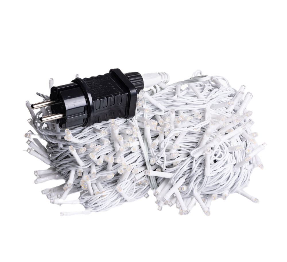 Гірлянда-бахрома довжиною 50 м створює щільне, виразне світіння для фасадів, терас, веранд, парканів і фотозон. 840 LED-ламп формують рівномірний каскад світла без провалів, а білий провід залишається майже непомітним навіть на світлих поверхнях.