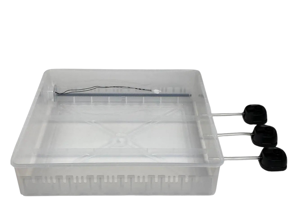 Прилад виготовлений з міцного нетоксичного пластику, стінки якого пташеня не розклює. Зазорів і щілин немає, кришка щільно прилягає до основи, що гарантує рівномірний і повноцінний обігрів яєць. За допомогою цифрового датчика температури можна здійснювати калібрування за еталонним термометром.