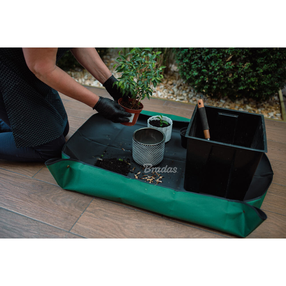 Універсальний килимок із водонепроникного поліетилену призначен для пересадки кімнатних рослин та квітів, створення різних флористичних композицій. Також його можна застосовувати під час підготовки розсади до пересадки.