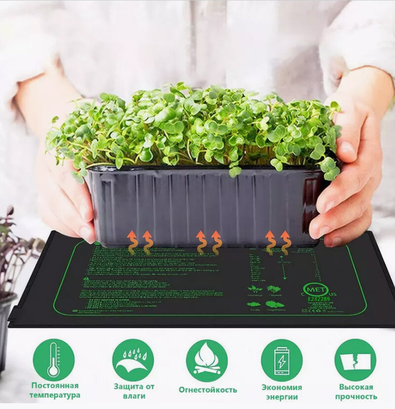 В холоді кількість не пророслих насінин може зменшитися на третину, а самі рослини будуть слабкими і не дадуть високого врожаю. Використання килимка для підігріву розсади дозволить підвищити проростання, силу і життєздатність рослин. Завдяки багатошаровій структурі пристрій забезпечує рівномірне розподіл тепла. Він відрізняється практичністю і довговічністю.