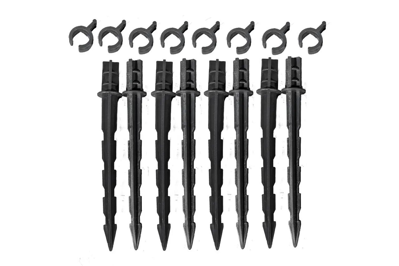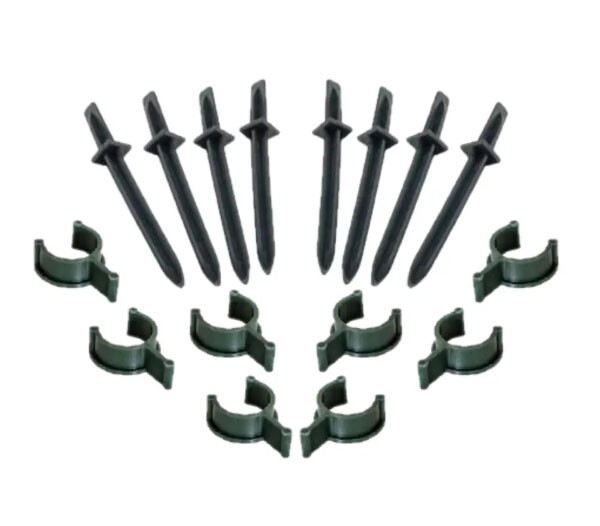 В упаковці знаходяться 20 кілочків для встановлення аркового парника та 20 кліпс для надійної фіксації полотна. Кріплення виготовлені з еластичного матеріалу.