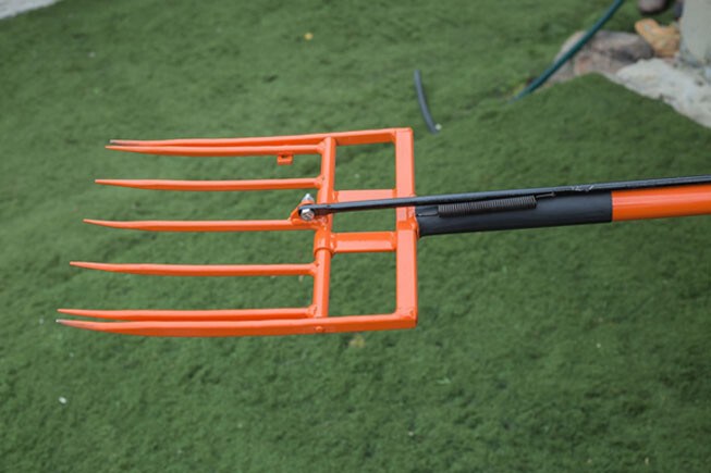Собрать чудо-лопату просто с помощью 3 болтов и гаек. Рукоятку крепят одним болтом, ее положение меняют по желанию огородника (справа или слева). Четвертый болт и гайка крепятся в районе зубцов и оттягивают пружину.