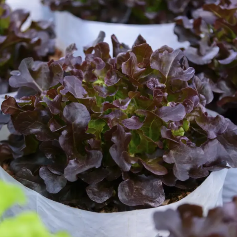 Сорт дублистого салату Ред Боул з яскравою розеткою листя.