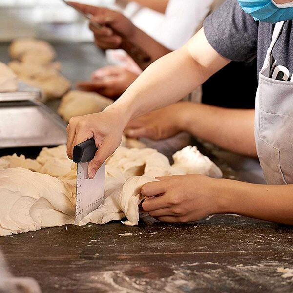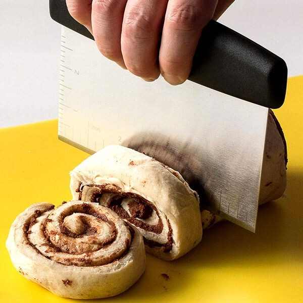 Качественный нож, острый - прекрасно режет тестовые заготовки. Разметка в сантиметрах облегчает отмерять точное количесво теста. Уже успела опробовать на булочках.