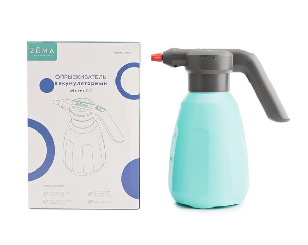 Ручний обприскувач Zеma стане чудовою альтернативою колишнім моделям, які використовувалися в садах та квартирах. Апарат має оптимальні розміри, ергономічну форму, малої ваги. Обприскувач забезпечений потужним насосом і плавним регулюванням розпилення — від потужного струменя до дрібнодисперсного крапельного зрошення. Колба виконана із міцного пластику кольору бірюзи.