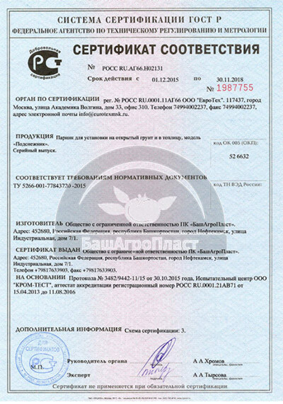 Изготовитель: ООО "Башагропласт", г.Уфа.
