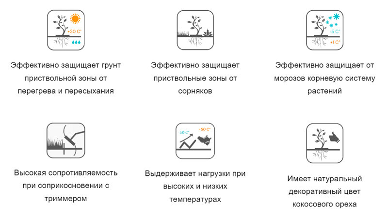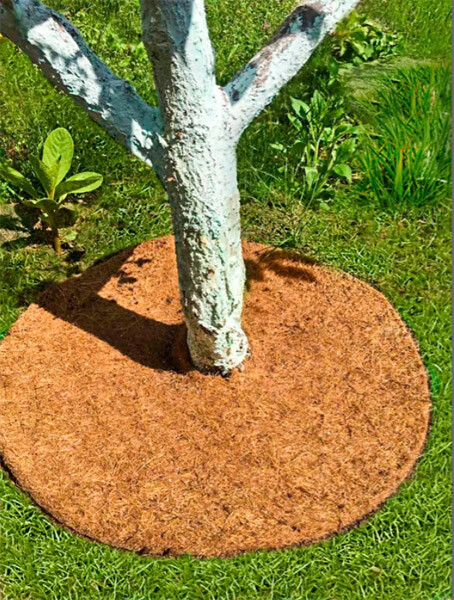Ефективна мульча із натурального кокосового волокна. Діаметра 60 см достатньо для великих та невеликих дерев. Виконує функції до 6 років. Скорочує необхідність у поливі та прополюванні, при цьому добре пропускає до коріння повітря.