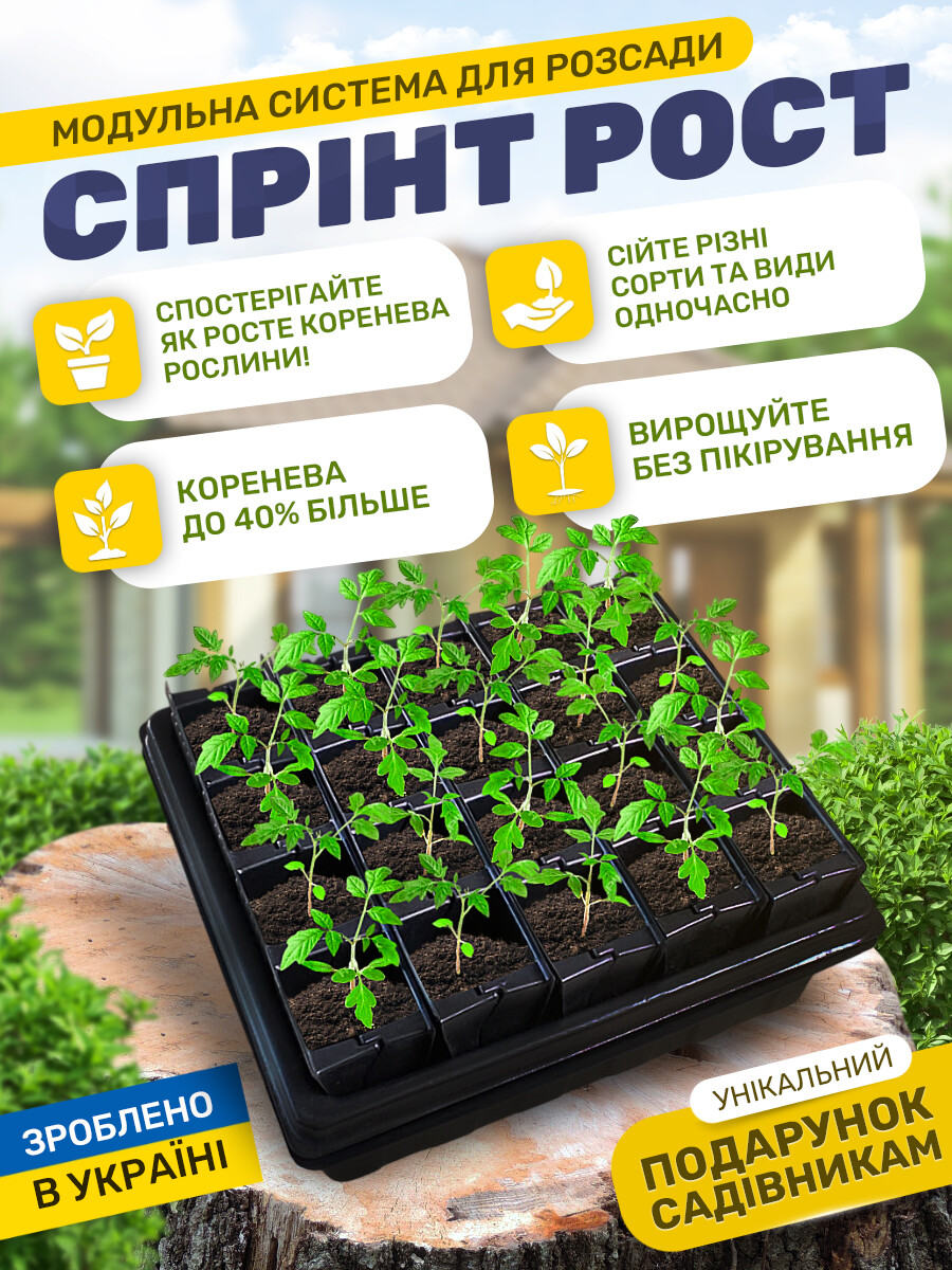 Забудьте про "одноразові" неефективні касети для розсади! З багаторазовою системою "Спрінт Рост" ви отримаєте розсаду на 30% потужнішу, гарантовано уникнете основних помилок новачків — переливу/недоливу, недостатнього тепла та пошкодження кореневої системи рослин.