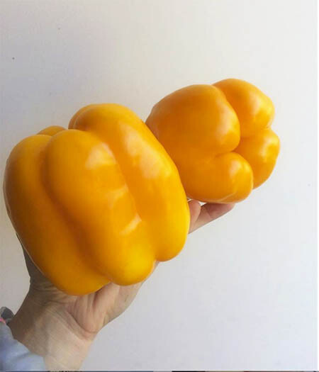 Ранний гибрид для выращивания в теплицах или открытом грунте с подвязкой к опоре.  Перцы кубовидной формы, крупные, размером 12х12 см, массой 200-220 г, в технической спелости темно-зеленые, в биологической - насыщенно желтые, плотные, глянцевые. Толщина стенки плода 8,5-9 мм. Вкус отличный, товарность высокая.