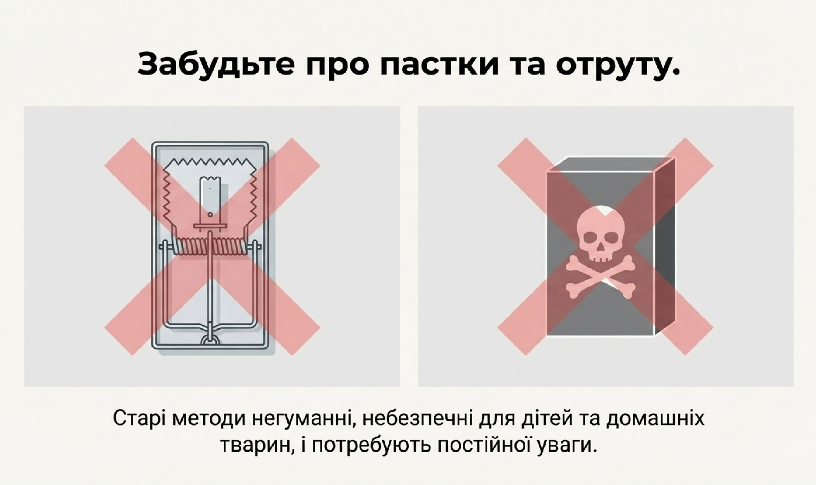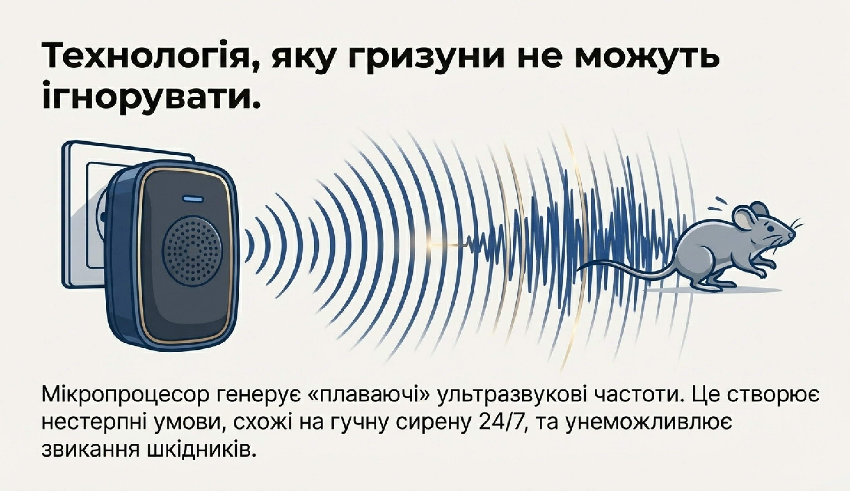 Існують гуманні способи боротьби з гризунами, і найефективніші з них - ультразвукові відлякувачі. МК-150 випромінює ультразвук, який змушує гризунів шукати інше місце для проживання. На відміну від більшості аналогів на ринку, прилад Харківського виробництва оснащений мікропроцесором, що генерує «плаваючі» частоти. Це виключає звикання тварин з часом.