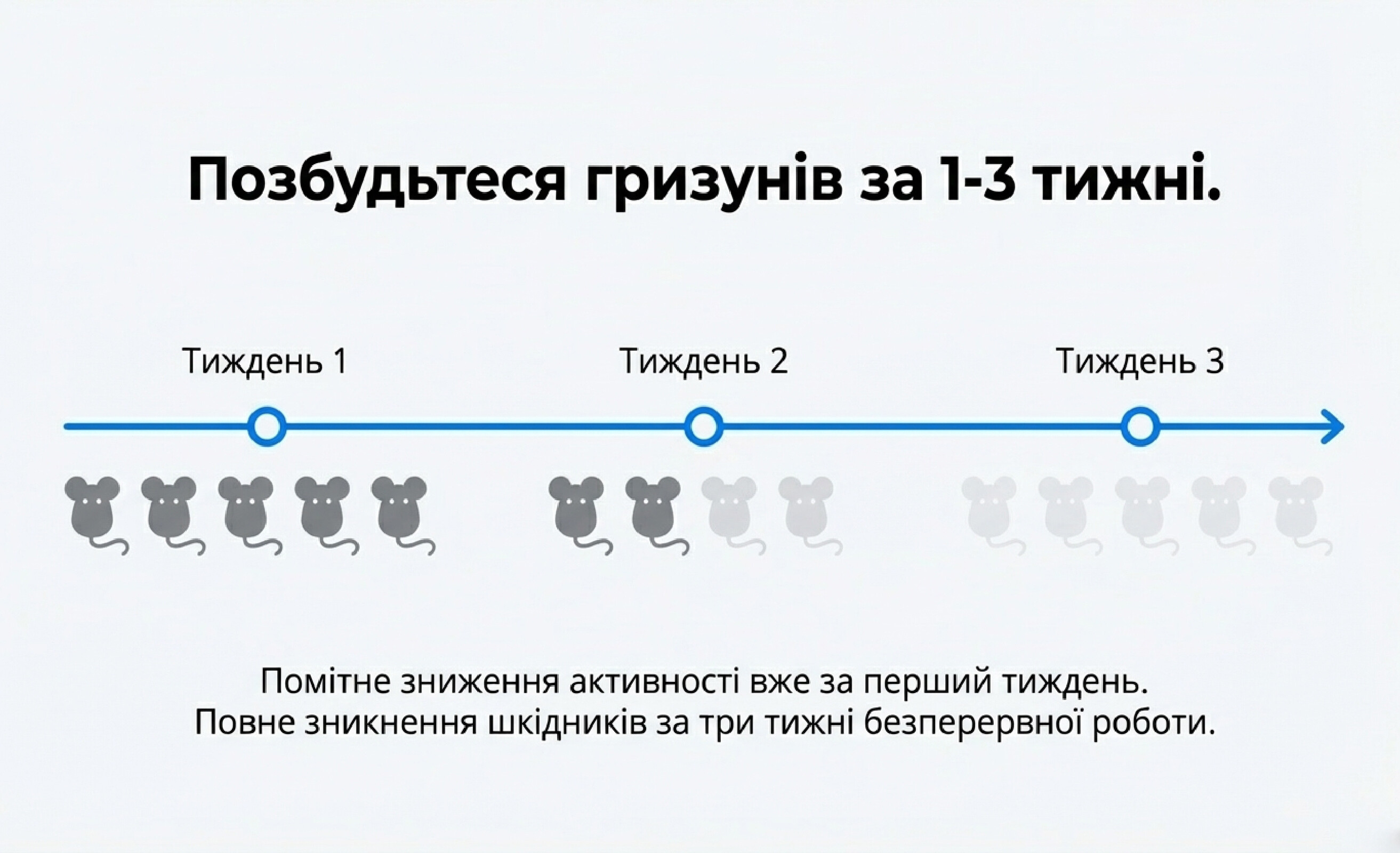 Використовую "МК-150" уже тиждень, і активність мишей знизилась. Пристрій непомітний і не створює жодних звуків, що важливо для мого побуту.