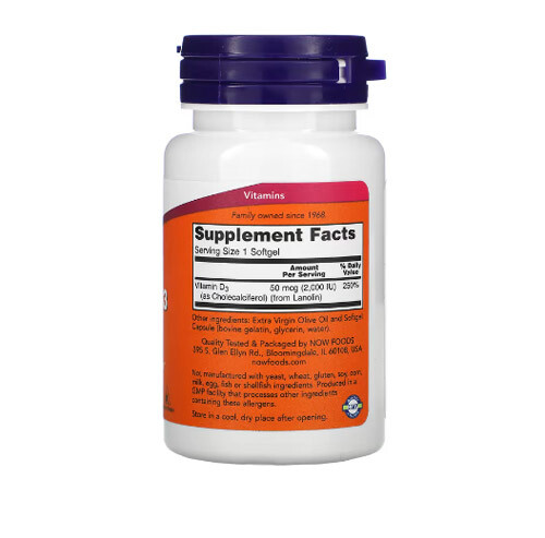Харчова добавка від NOW Foods – це якісний, чистий та високоефективний вітамін D3. Містить 250% добової норми елемента. Засіб призначений для дорослих.